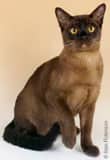 The Burmese is a cat that is round all over. The head is round, the tips of the ears are round, the eyes, chin and even the feet are round. This breed is solid both in looks and in feel and has great strength.The coat of the Burmese is short and glossy. Darker shading on the points may be seen in kittens, but this shading disappears with age, producing richness in any of the accepted colours.While the accepted colours for Burmese have increased in the past few years, the vast majority of Burmese are still the traditional deep brown (sable).|