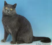 The Chartreaux has a religious background. This beautiful blue cat was probably brought to France from the Middle East in the 1500s. The Chartreaux were actively bred by Carthusian monks near Paris, and were probably working cats.A methodical Chartreaux breeding programme was started in France in the late 1920s, which resulted in a strong, healthy shorthaired blue cat with a lovely face and a powerful body. The Chartreaux was imported to Britain, not only to be bred as its own breed, but also to enhance the body, coat type and coat colour of the British shorthair.During World War II, the Chartreaux was almost lost. Through the work of dedicated breeders, it has been brought back as a viable, healthy breed, although still relatively rare.