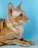 Because of the slender boning on the Cornish rex, they may feel almost dainty, but this cat is athletic and not at all fragile.The Cornish rex has a small, narrow head with large ears and eyes that look large for the size of the head. They have a Roman nose, a strong chin and long slender legs. The tail is also slender and long with a great degree of flexibility.The coat of the Cornish rex is unique among cats. It is silky and soft but forms itself into waves that look a bit like corn rows.|
