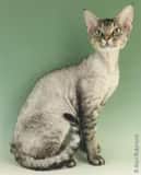 When the Cornish rex cat started exhibiting in cat shows in England, they became a curiosity and pictures often appeared in newspapers. In Devon, Beryl Cox saw one of the pictures. She was interested because she lived near an old tin mine where a colony of cats lived. These cats also had curly coats. Cox had a kitten that was curly coated. Although the mother was a straight haired barn cat, this kitten had curly hair so Cox assumed that one of the strays from the tin mine was the sire. This cat was names Kirlee and he became famous as the beginning of the breed known as the Devon rex.At first, breeders believed that the curly coat of both the Cornish rex and the Devon rex might be related and the two could be bred to each other. This breeding was attempted, but every time the resulting kittens all had straight coats. The curly coated cats were determined to be two distinct breeds.